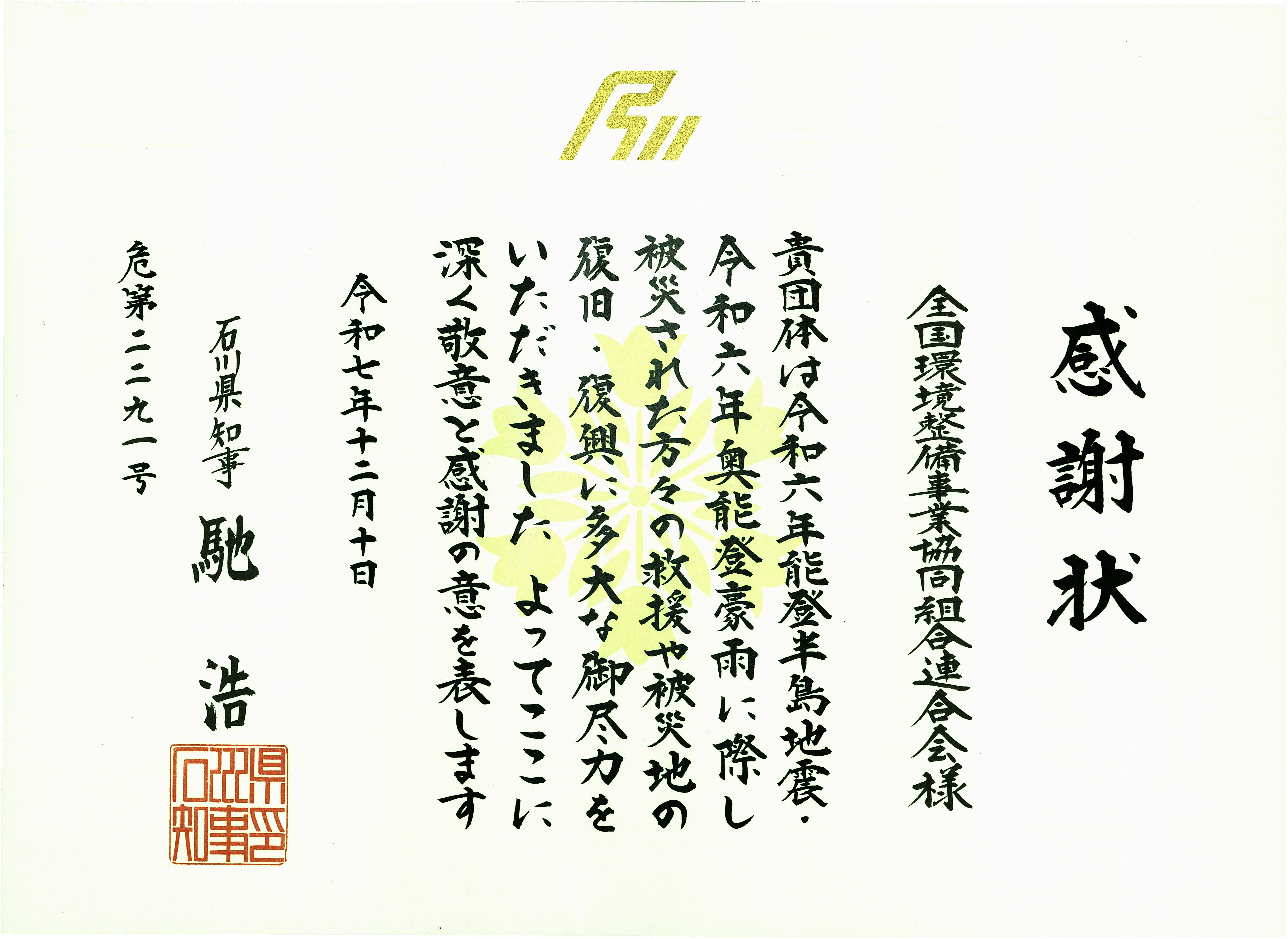 内閣総理大臣からの表彰状(平成8年9月1日)
